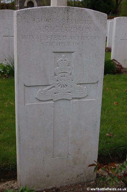 There are many cases of headstones bearing two (or more) names in CWGC cemeteries. But today, the graves of Bombadier A Richardson and Gunner Henry Panter are marked by two seperate headstones, denoting two separate graves.