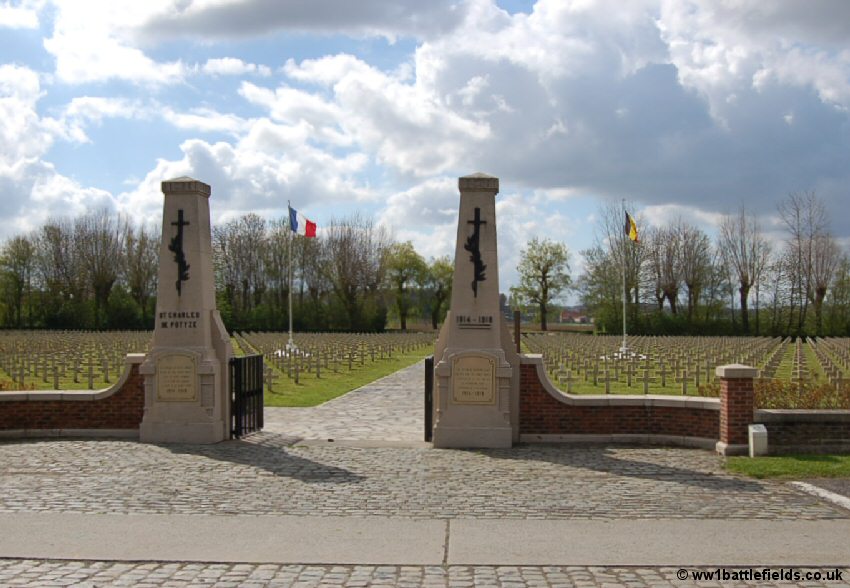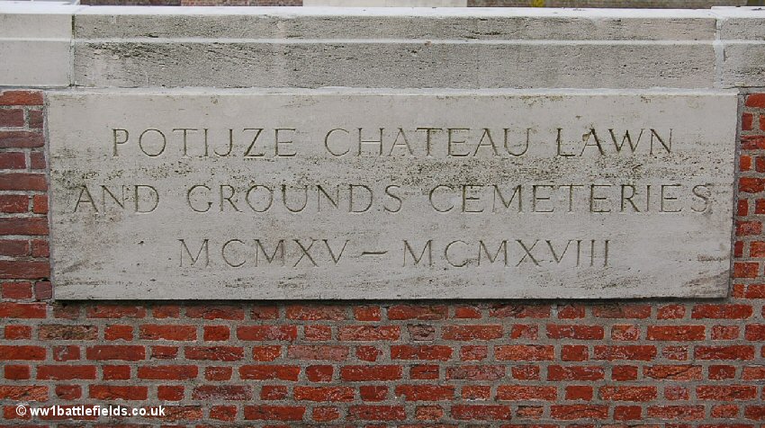 Potijze Chateau Lawn Cemetery contains 226 graves and Grounds Cemetery contains 476 burials. There are a number of special memorials to men known to be buried here at the back left of Grounds Cemetery.