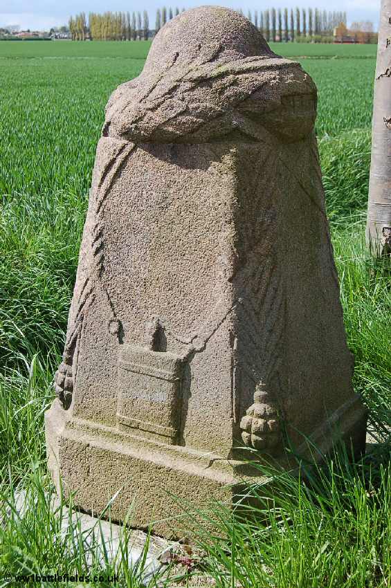 One of the Demarcation Stones erected after the war by the Ypres League can be found near Potijze - on the N332 a little further away from Yprs, and more or less opposite a building which houses Picanol Research.