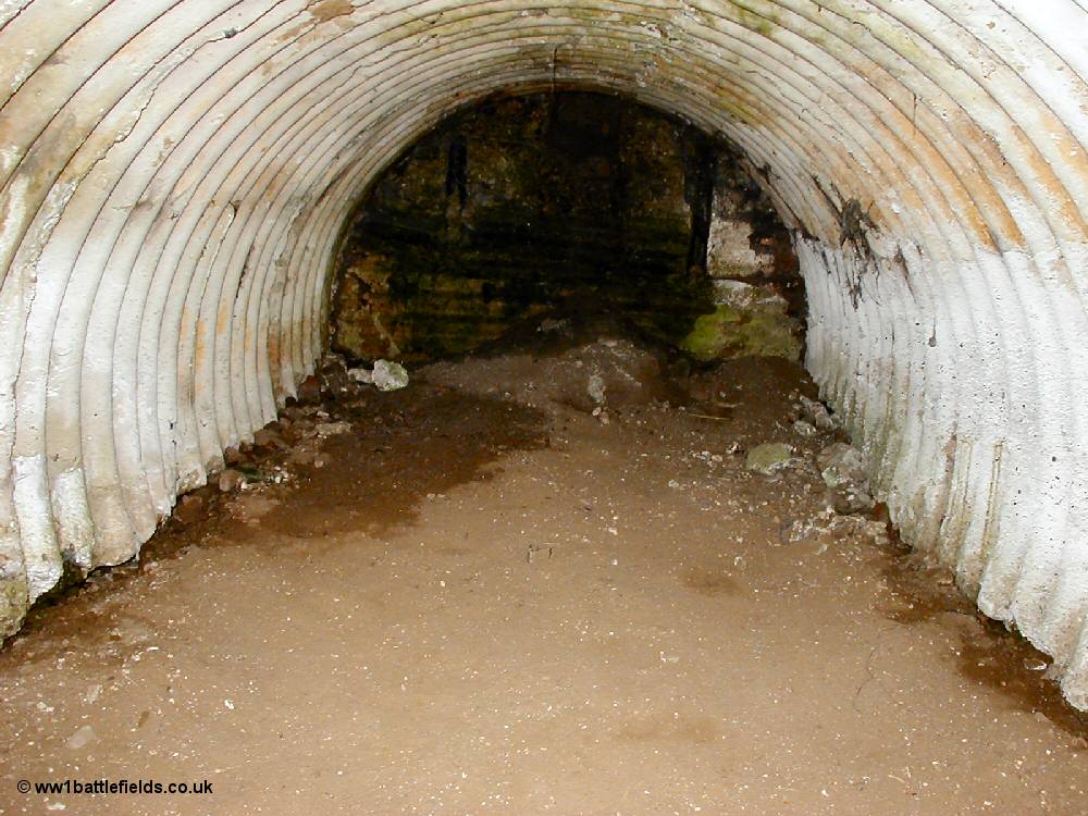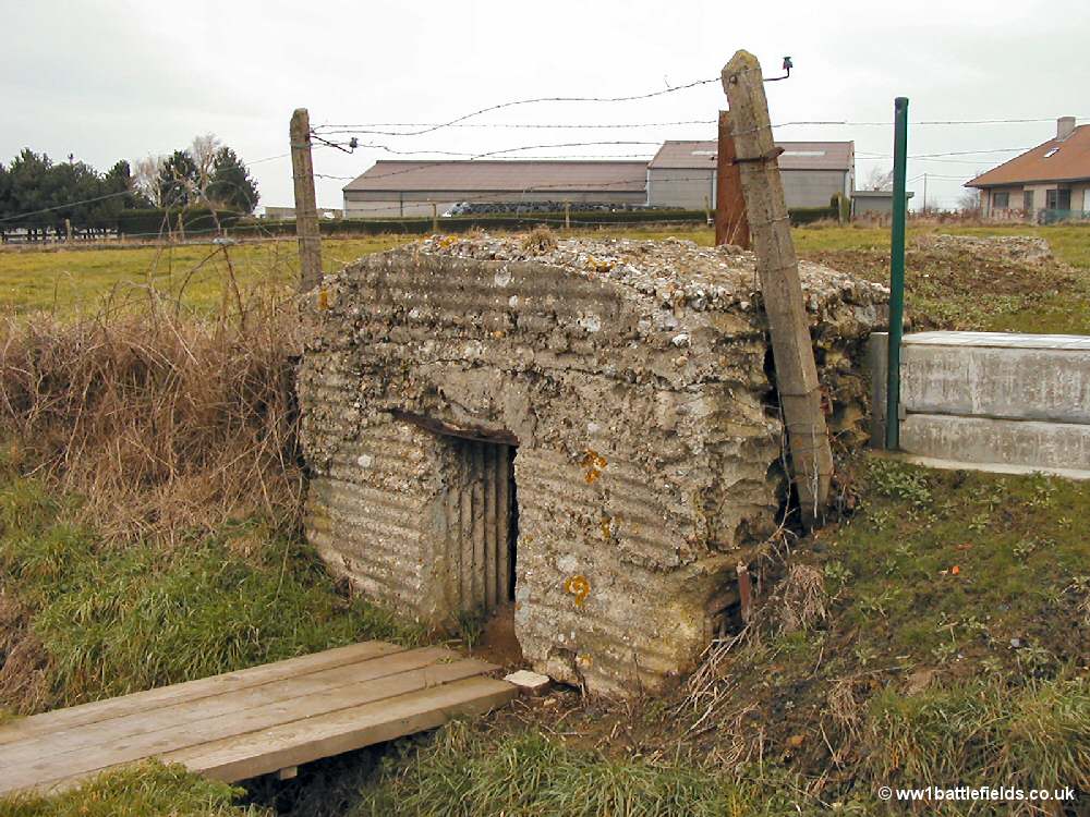 A little away from the cross-roads heading south-west (in the direction of Wieltje and Ypres) is a small bunker set into the bank near a house.