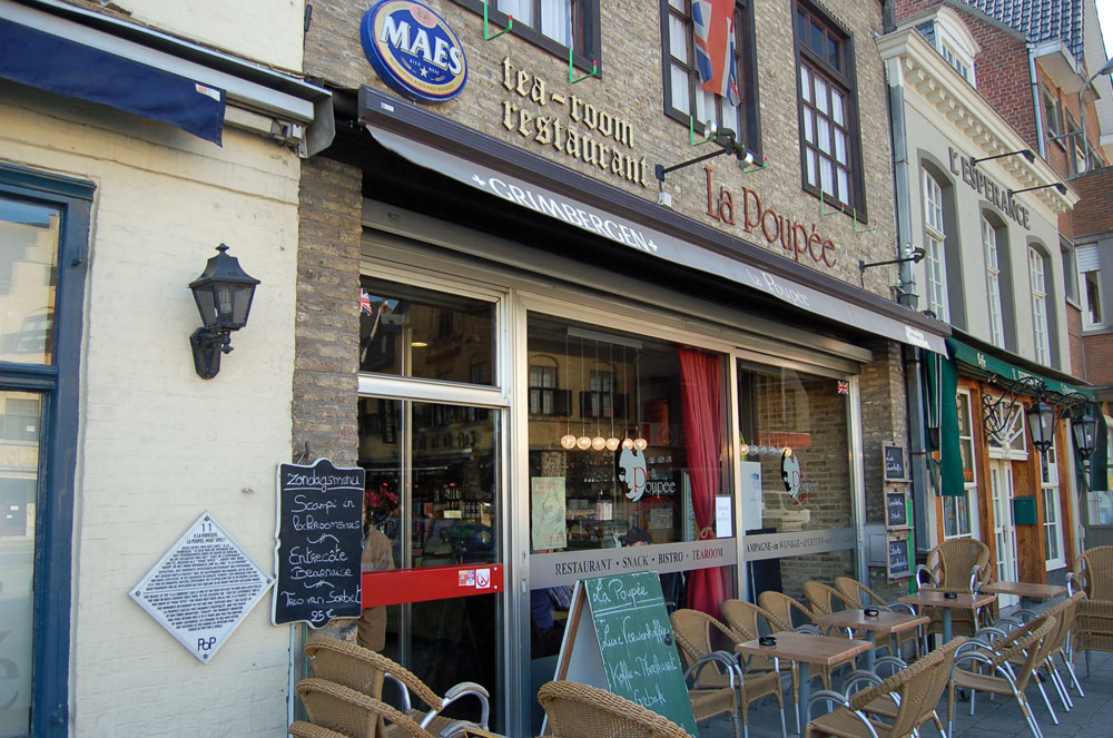 Back in the main square is another of the numbered information plaques; this time outside a cafe which during the war was fanous for the three daughters of the proprietor, especially the youngest who was known as 'Ginger'. The cafe, known as A La Poupee, was open only to officers and it seems that many of these fell for the beautiful 'Ginger'.