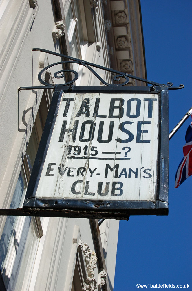 A metal plaque on the wall reads 'Talbot House served British troops from 1915 to 1919. In 1930 it was restored to Toc H as a possession for ever by the inspired imagination and signal generosity of Lord Wakefield of Hythe and was opened by him personally in 1931'. The club was named for Gilbert Talbot who is buried in Sanctuary Wood Cemetery, and still offers accomodation for battlefield visitors today - more information on this and its history can be found on the Talbot House website.