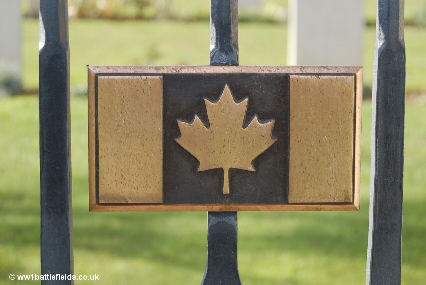 2nd Canadian Sunken Road Cemetery and the Maple Leaf on the gate