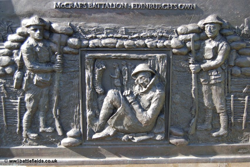 One of the plaques on the memorial also commemorates the 15th Royal Scots, which was also known as the City of Edinburgh Battalion. This battalion was raised in late 1914, and included men from Manchester who had not been allowed to form a 'Manchester Scottish' battalion. They enlisted in the 15th Royal Scots instead. Nearly 250 men from this battalion were killed on the 1st of July during the attack on Contalmaison.