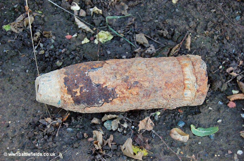 'Iron harvest' near Peake Wood Cemetery. The two shells on the right are