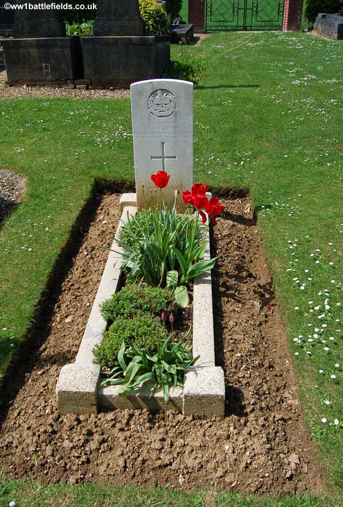 The graves are of RSM W. Pearce of the 10th Loyal North Lancashires, and Lieutenant L. S. H. Griffin of the 10th Gloucesters. It has been speculated that these two bodies were recovered by French civilians after the War and brought back to the village Communal Cemetery for reburial. This may possibly be the case for RSM Pearce, but a letter from the War Office to Lieutenant Griffin's father sent on the 15th of November 1916 states that he is buried in Bazentin-le-Petit Communal Cemetery, where he still lies today. This letter goes on to say that the grave was "marked by a durable wooden cross with an inscription bearing full particulars".
