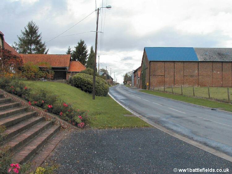 This village was captured in the attacks of the 14th of July, 1916. The picture below shows this small and quiet village between the wars, and the view has not changed all that much in the modern picture that can be compared with it.
