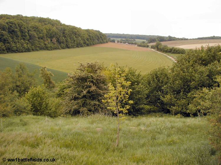 A view along Death Valley towards Flatiron Copse Cemetery