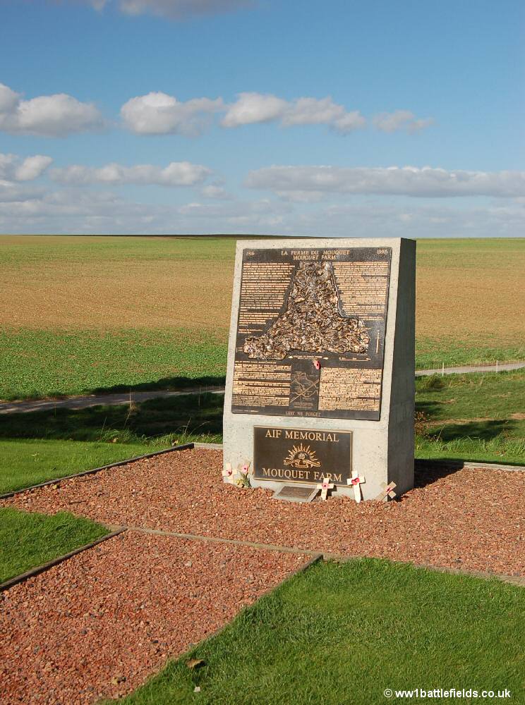 Taking the turn towards Thiepval leads to the site of Mouquet Farm, where there is another Ross Bastiaan bronze and also good views towards the Thiepval memorial. The bronze tablet was unveiled by Tim Fischer, Deputy Prime Minister of Australia in September 1997. Mouquet Farm is another site with Australian connections (sometimes known as 'Moo-cow' or 'Mucky' Farm). After taking the village, the Australians founght for a month trying to take Mouquet Farm, but were relieved by the Canadians on the 5th of September. The farm was not taken until nearly another month after that.