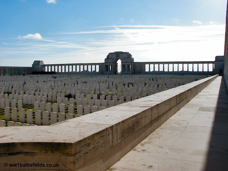 Pozieres British Cemetery looking towards the panels with the names of the missing