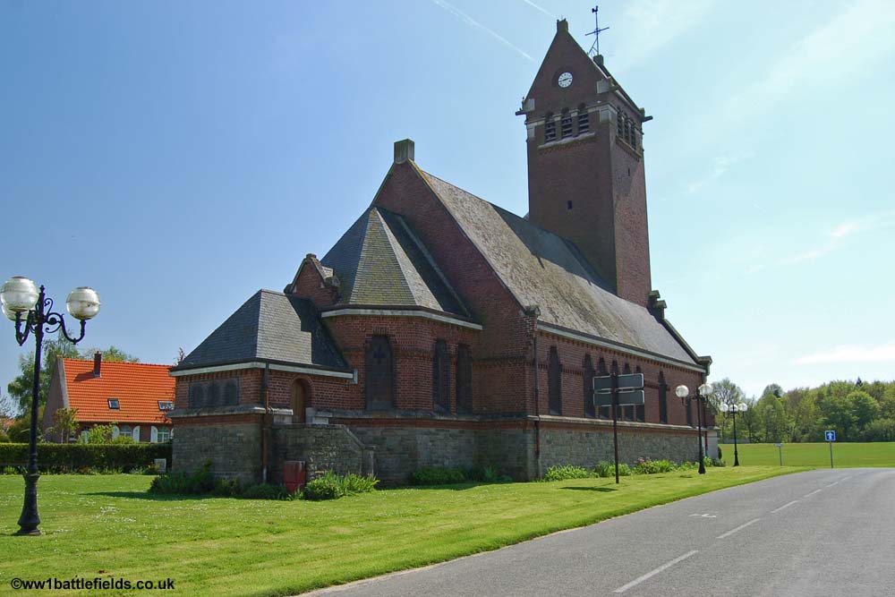 Following the main road a short way towards Albert, another road to the right leads to the village church, rebuilt since the war. The village's own war memorial is located in front of this.