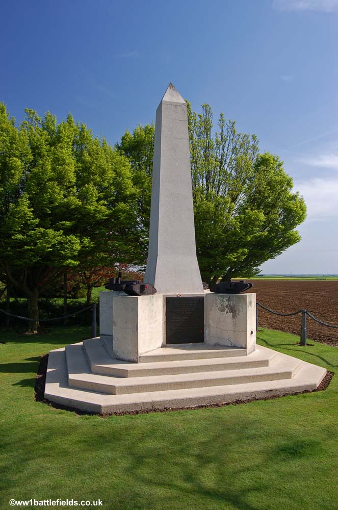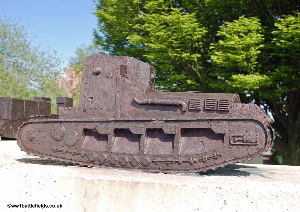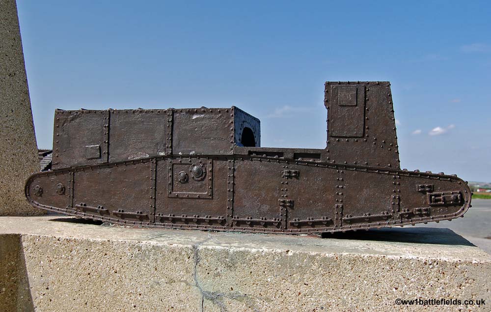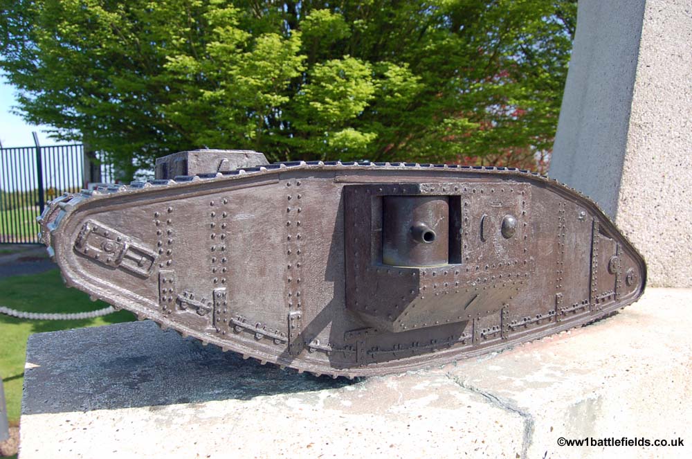 At each corner of the memorial is a small-scale replica of some of the tanks used. The two at the front look very similar, but are in fact slightly different, being Mark IV and V Heavy tanks respectively.