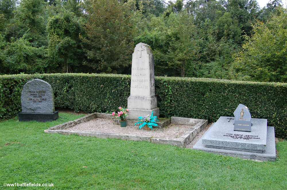 In the churchyard there are a few graves dating from much later than the Great War in one corner. One of the graves is of Abbe Hommant, a chaplain at the Ossuary for over forty years, who died in 1998.