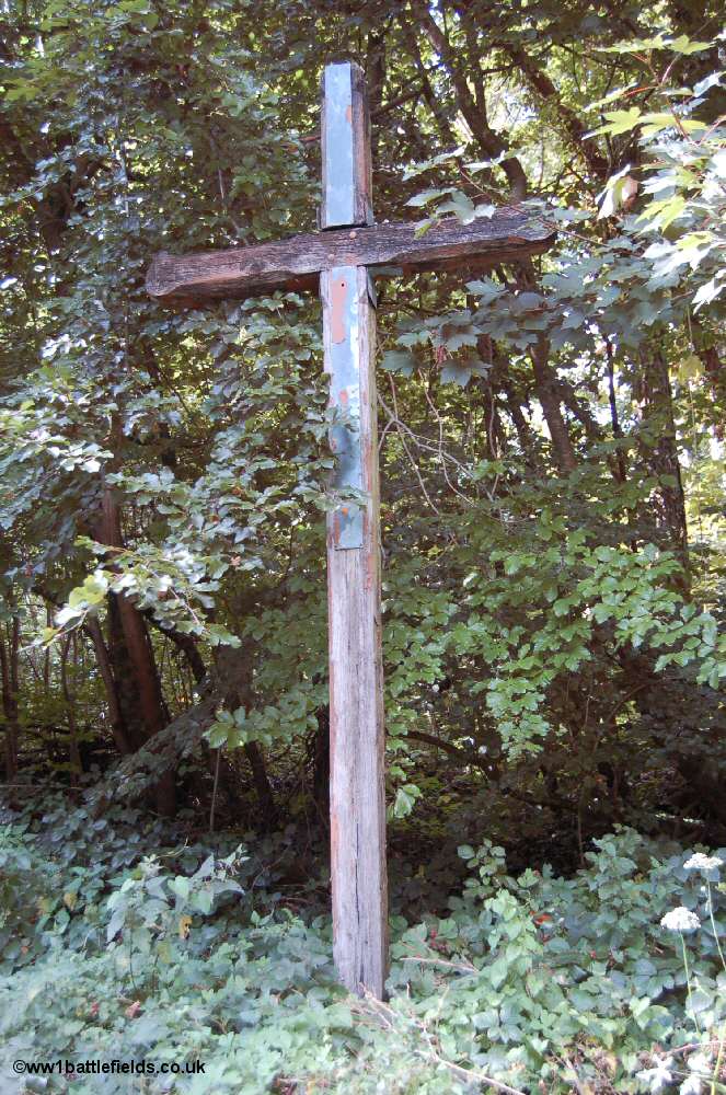The site of Forges, the village from which the Germans attacked Cumieres in the early days of the War can be found a little further to the north. Here, several wooden crosses were erected after the War to mark the site of the village. One of the wooden crosses is still visible just on the D160 road at the rear of a turning area.