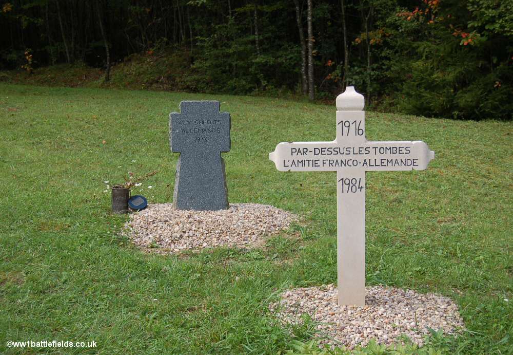 Because the peak itself was so badly damaged, instead tunnels were built under the surface, with narrow gauge railways to supply the troops. Fighting continued here from April 1916, with the French launching repeated offensives in the months that followed. However, it was not until August of 1917 until the area was retaken, with the Germans trapped when a large mortar bomb destroyed the northern exit of the tunnel. Also located here are symbolic wooden and stone crosses, remembering both the Germans and the French who died on this blood-soaked hill.