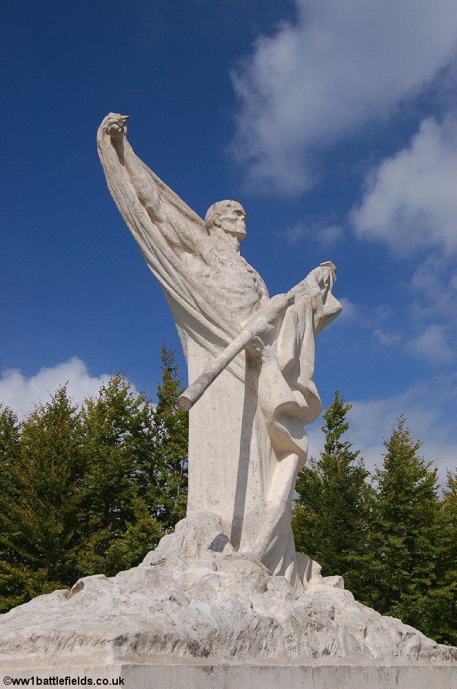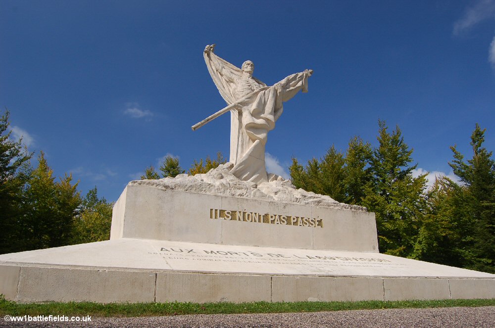 The famous Mort-Homme 'Skeleton Memorial' commemorates those of the 36th Division who fought and died here. It is estimatd that 10,000 Frenchmen lost their lives here. The memorial, by Froment-Meurice, was unveiled in 1922, and the information boards show contemporary pictures of it.
