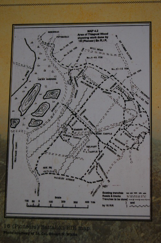 The entrance to the trenches is just to the left of Connaught Cemetery (see later on this page). The Somme Association have already spent around £25,000 in laying paths, constructing fences around the excavated trenches and on associated work. Some of the money has been spent on a series of useful information boards, which include contemporary wartime pictures to help illustrate how the trenches would have looked during wartime.